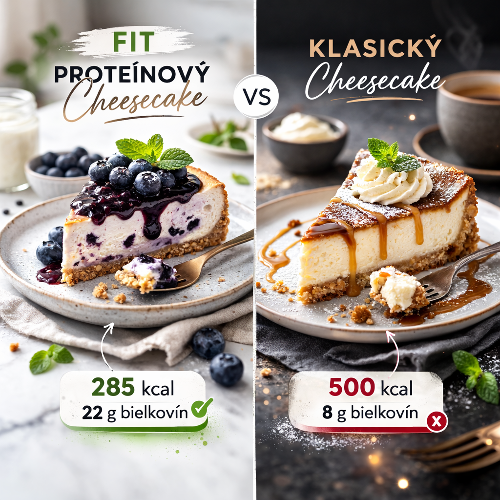 Hľadáš dezert, ktorý je krémový, chutný a zároveň vhodný aj pri chudnutí? Tento fit čučoriedkový proteínový cheesecake je ideálnou kombináciou sladkej chuti, vysokého obsahu bielkovín a rozumnej kalorickej hodnoty. Jedna porcia má približne 285 kcal a až 22 g bielkovín, čo je výrazne menej než klasická verzia cheesecake.