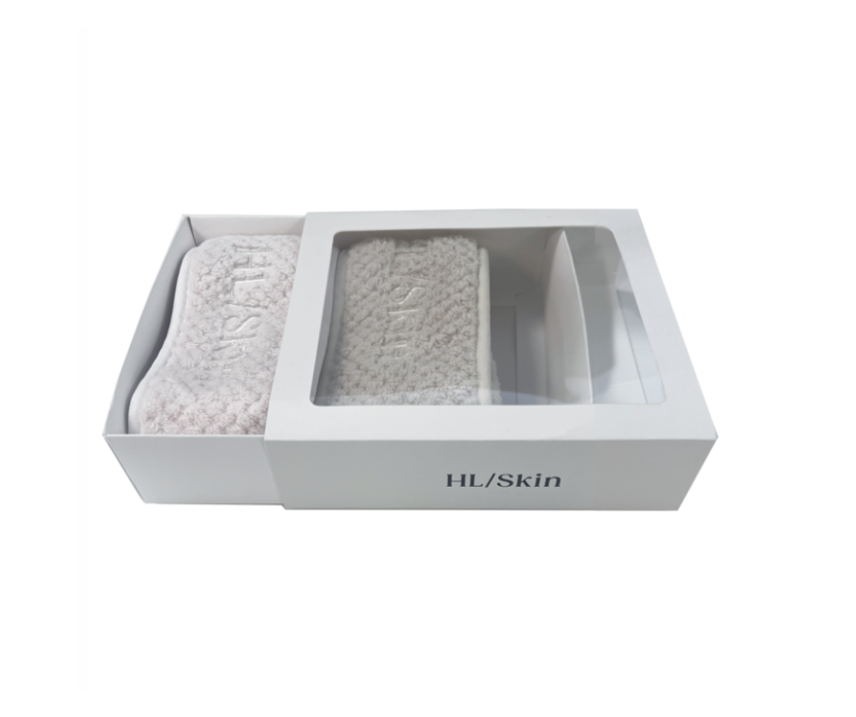 Nasaďte si čelenku na hlavu a stiahnite ju až ku krku tak, aby logo HL Skin bolo vpredu. Rozpustite vlasy tak, aby ležali na čelenke. Zdvihnite čelenku až k vlasovej línii a vlasy s ňou uhlaďte dozadu.