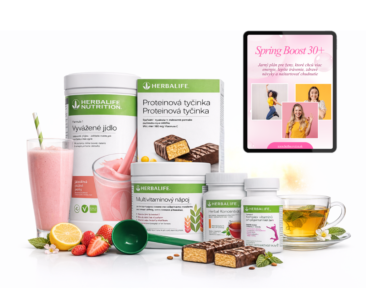 Spring Boost 30+ je výživový balíček postavený na prémiových Herbalife produktoch, ktoré podporujú ženské telo po zime. Kombinácia raňajkového kokteilu, vlákniny, vitamínov, proteínovej desiaty a energetického čaju poskytuje kompletný denný systém pre ženy po 30-ke, ktoré chcú: