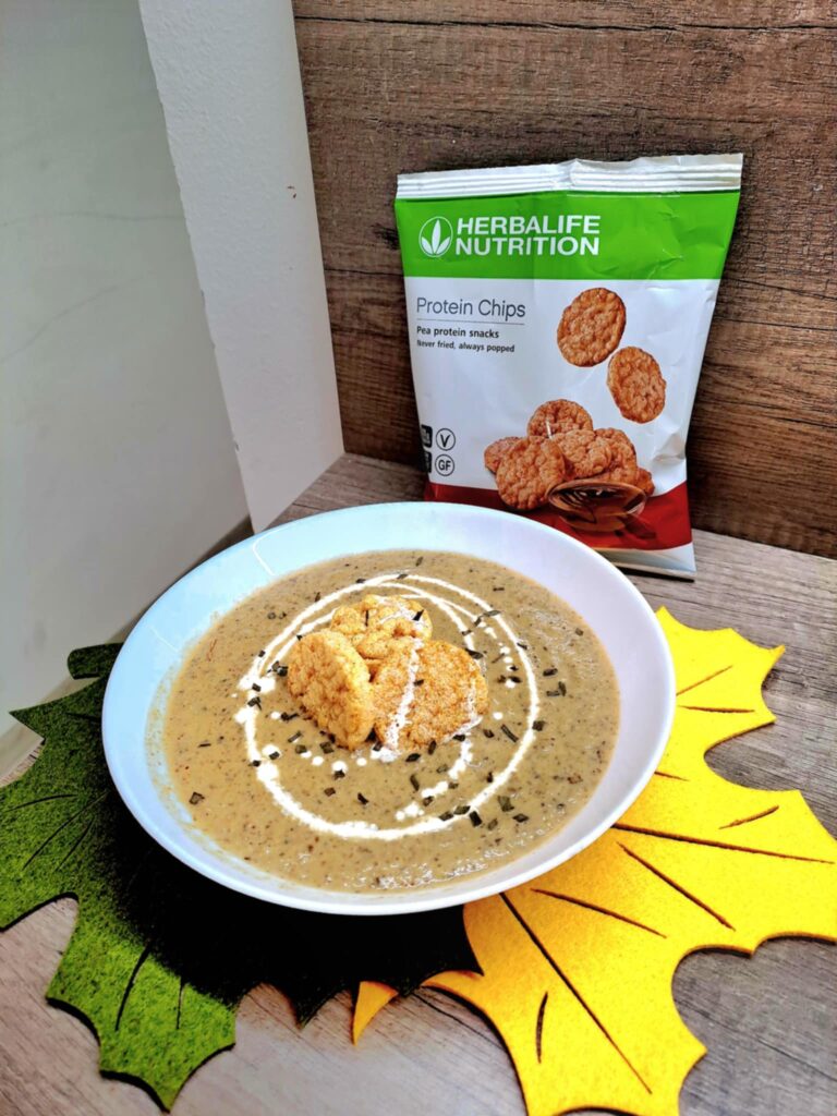 Môj tip: Pre navýšenie bielkovín k tejto hustej polievke z pečených húb odporúčam >Herbalife proteínové čipsy< alebo bielkovinový chlebík.